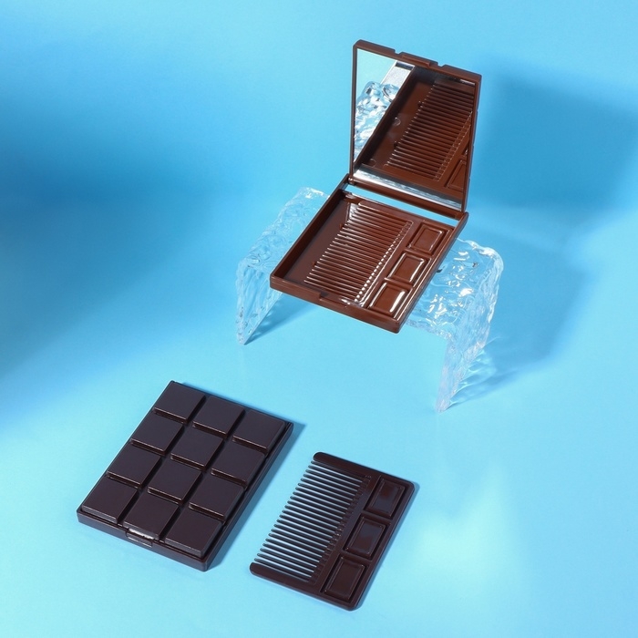 Зеркало складное «Шоколадное чудо», с расчёской, 8,5 × 6 см, цвет МИКС