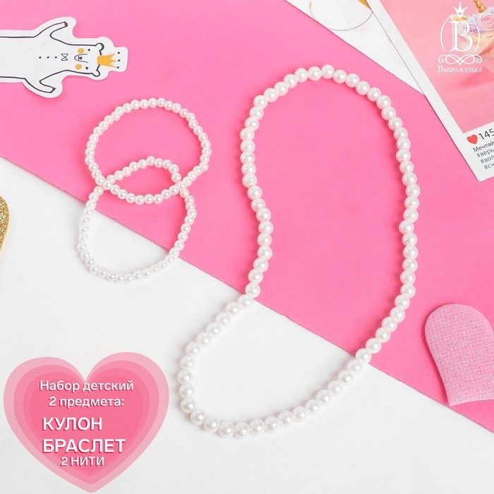 Набор детский «Выбражулька» 2 предмета: бусы, браслет, жемчужинки