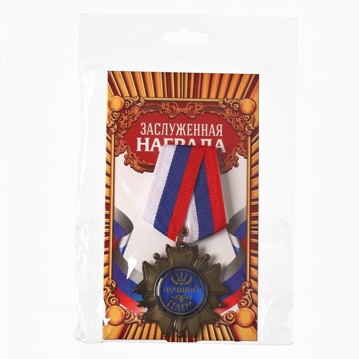 Медаль орден на подложке «Лучший папа», 5 х 10 см