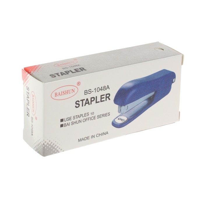 Степлер № 10 до 12 листов, BRAUBERG Einkommen, пластиковый корпус, встроенный антиСтеплер, синий