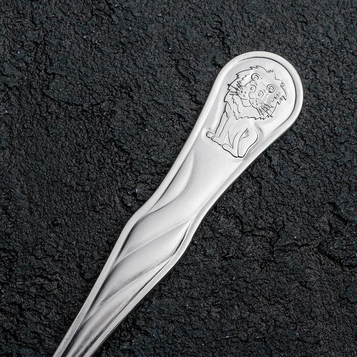 Ложка чайная детская «Лёвушка», h=12,5 см, толщина 1,2 мм, цвет серебряный