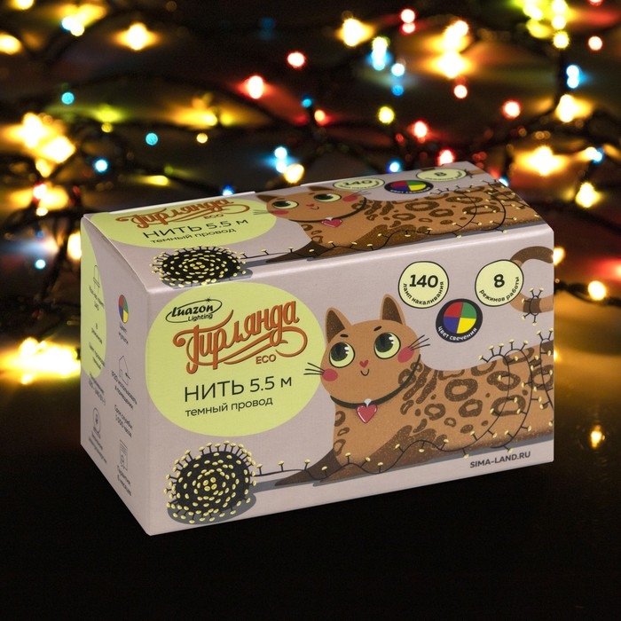Гирлянда «Нить» 5.5 м, IP20, тёмная нить, 140 ламп, свечение мульти, 8 режимов, 220 В