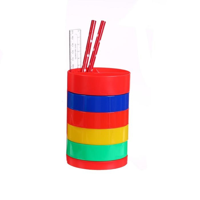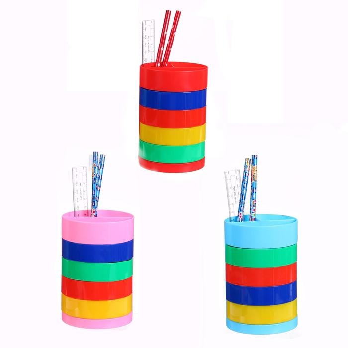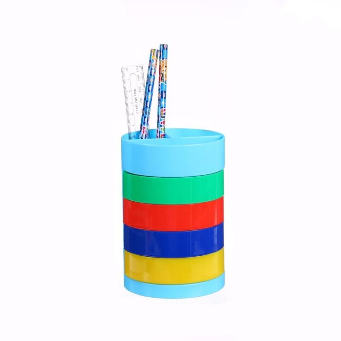 Настольный набор детский "Веер-радуга", из 5 предметов: подставка, ножницы, линейка, 2 карандаша, МИКС