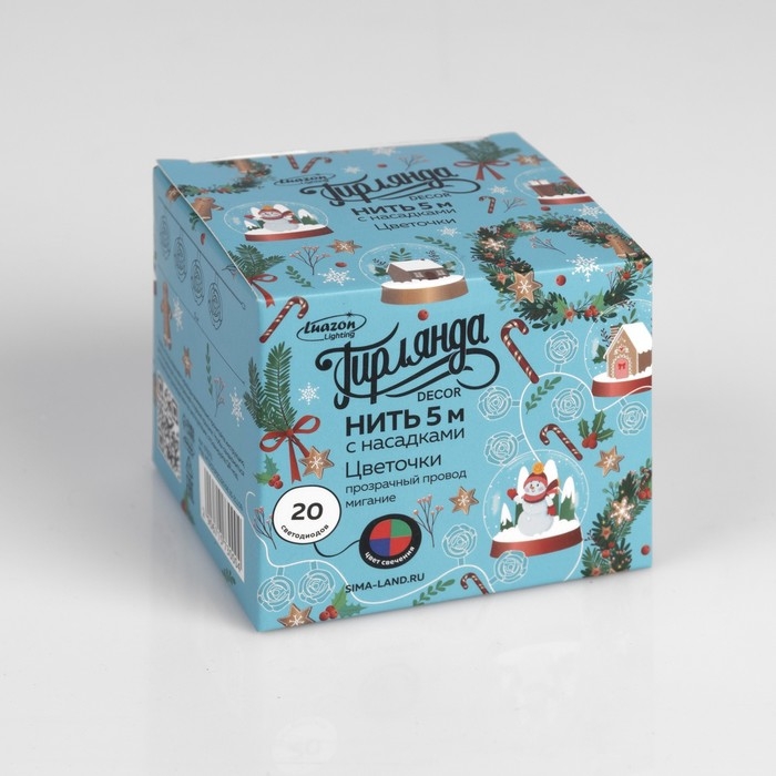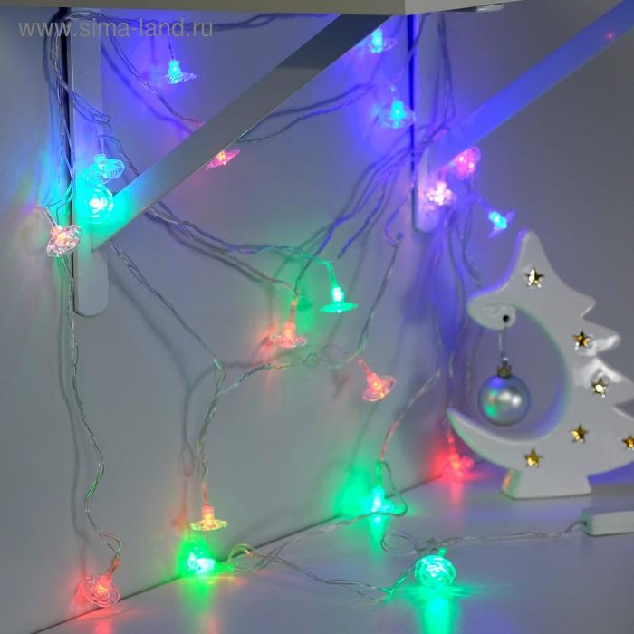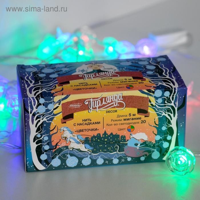 Гирлянда «Нить» 5 м с насадками «Цветочки», IP20, прозрачная нить, 20 LED, свечение мульти (RG/RB), мигание, 220 В