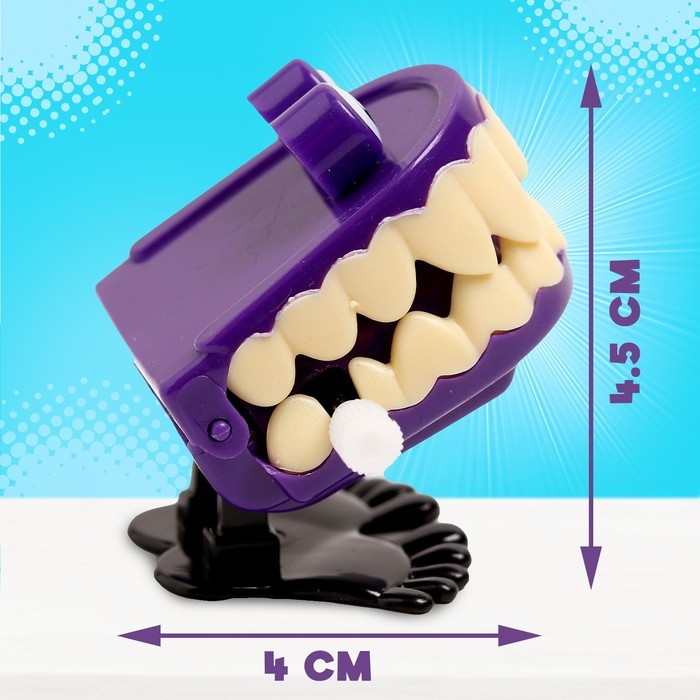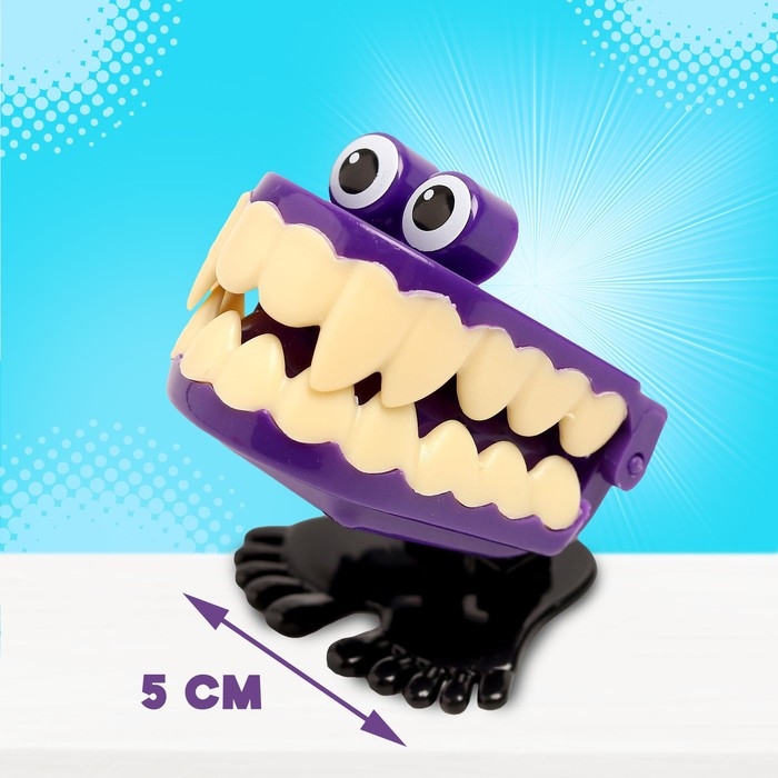 Заводная прыгающая игрушка развеселит детей и позабавит взрослых на вечеринке. Забавные челюсти на ножках двигаются от заводного механизма. Чтобы они заработали, их нужно просто завести и отпустить: игрушка резко устремится вперёд.