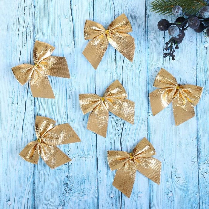Украшение ёлочное "Бантик" (набор 12 шт) 5 см, золото преобразят новогоднюю ель, также ими можно украсить и любые другие предметы. Сделайте праздничное убранство сияющим!