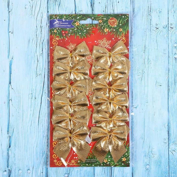 Украшение ёлочное "Бантик" (набор 12 шт) 5 см, золото