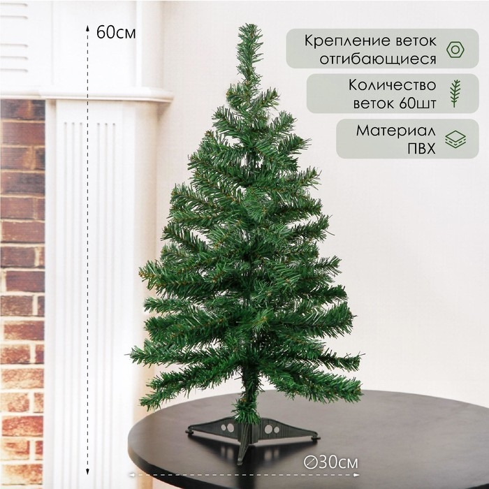 Ёлка "Простая" пласт подставка, 60 см d нижнего яруса 30 см d иголок 6 см 60 веток