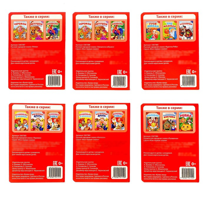 Сказки картонные для малышей, набор 6 шт. по 10 стр.
