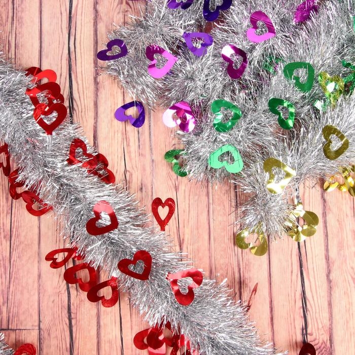Мишура "Ажур" сердце, d-8 см, 200 см, микс