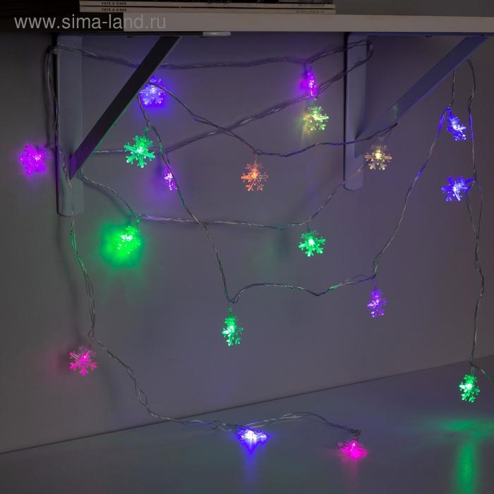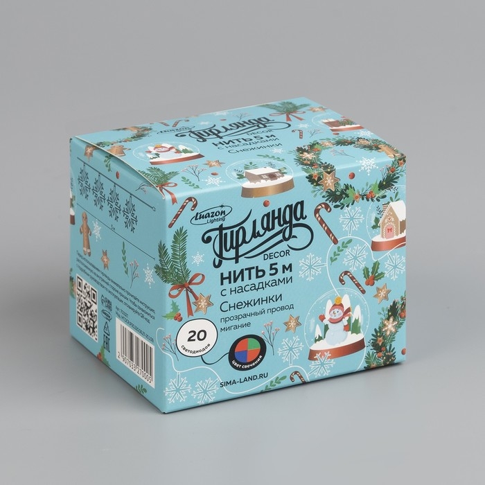 Гирлянда «Нить» 5 м с насадками «Снежинки большие», IP20, прозрачная нить, 20 LED, свечение мульти (RG/RB), мигание, 220 В