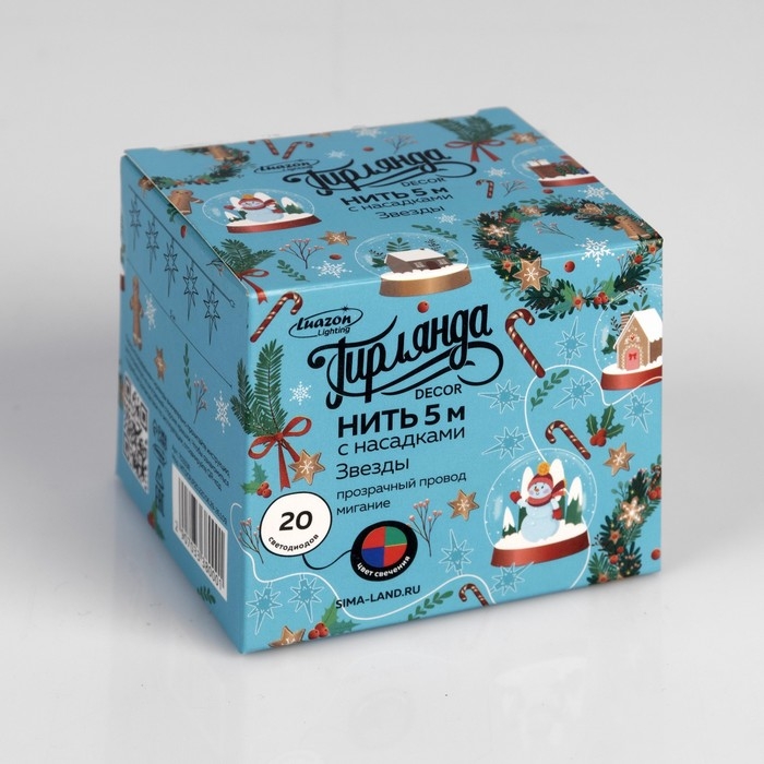 Гирлянда «Нить» 5 м с насадками «Подарки», IP20, прозрачная нить, 20 LED, свечение мульти (RG/RB), мигание, 220 В