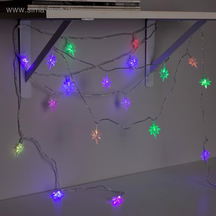 Гирлянда «Нить» 5 м с насадками «Звёзды», IP20, прозрачная нить, 20 LED, свечение мульти (RG/RB), мигание, 220 В