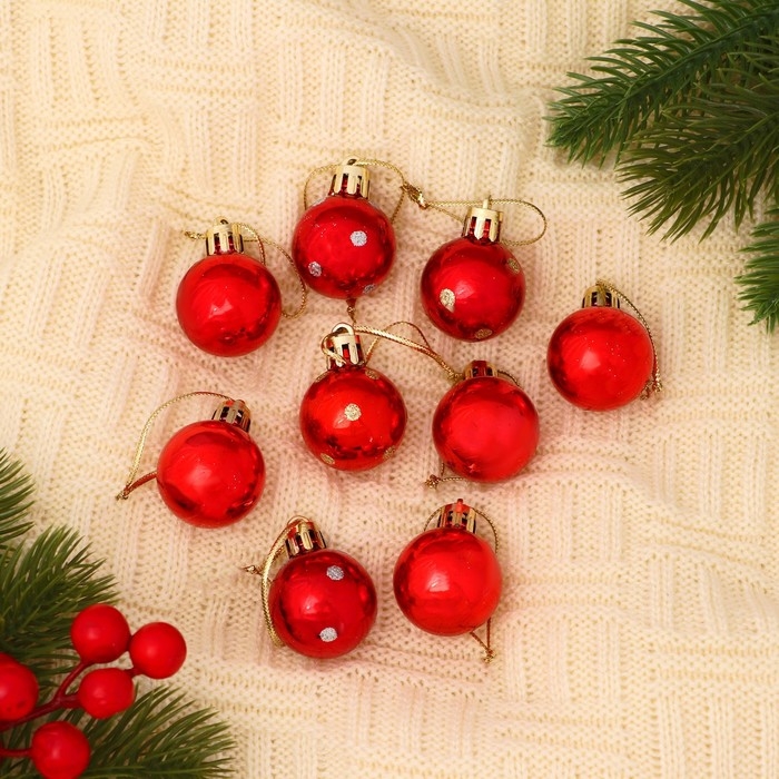 Набор шаров пластик d-3 см, 9 шт "Самарина" красный