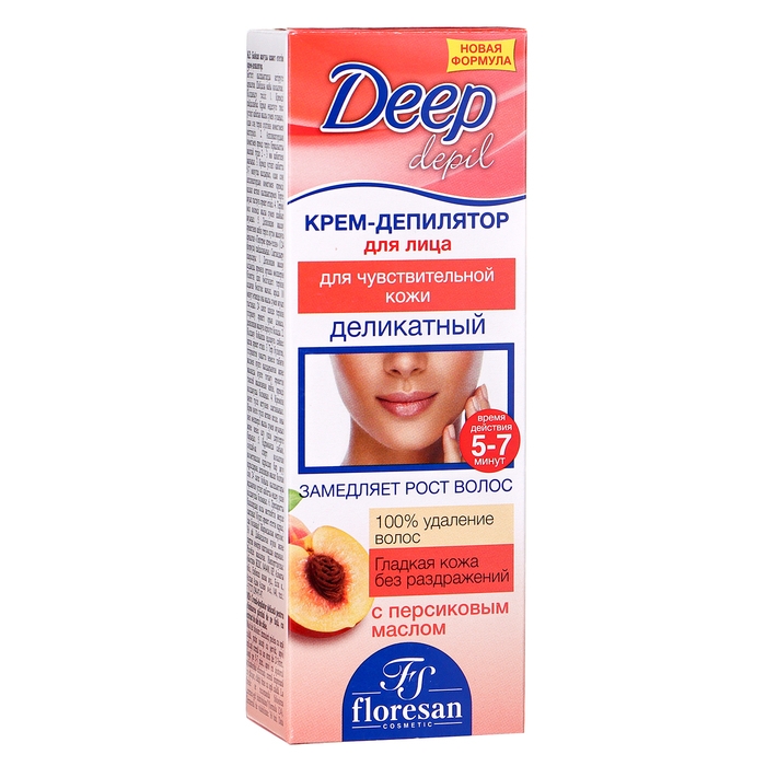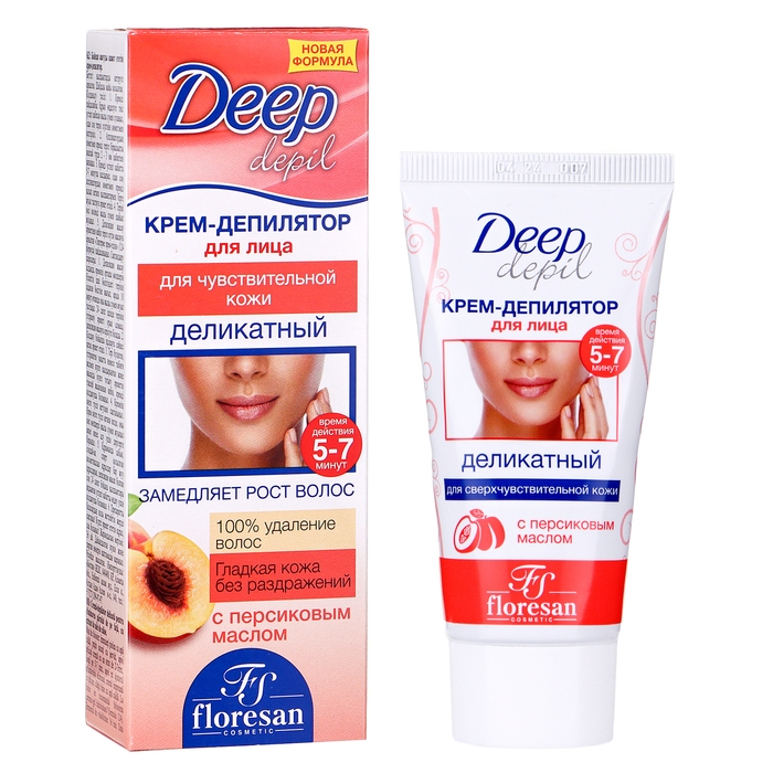 Деликатный крем-депилятор Floresan Deep Depil для удаления волос на лице с маслом персика, 50 мл