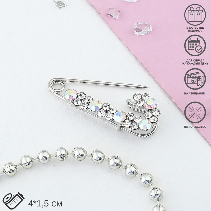 Это украшение – настоящая находка для модниц, предпочитающих нетривиальные аксессуары. Брошь-булавка станет не только оригинальным дополнением вашего наряда, но и позволит без труда приколоть при необходимости палантин или шейный платок. Используйте ее в качестве украшения шляпки, рубашки или галстука. Булавка «Лунная дорожка», 4 см, цвет радужный в серебре внесет особую нотку изящности в ваш образ и придаст ему еще больше очарования. Брошь выполнена из металла и украшена россыпью страз, игриво переливающихся на свету.