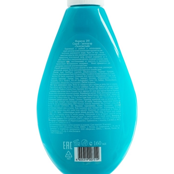 Практичный и удобный в использовании спрей-автозагар можно использовать круглый год для получения равномерного и стойкого загара. Через 3-4 часа после нанесения средства кожа приобретает золотистый, ровный и удивительно естественный загар, который сохраняется до 5 дней. Масло Ши и гиалуроновая кислота, входящие в состав спрея, тонизируют кожу, восстанавливают ее упругость и эластичность, препятствуют обезвоживанию эпидермиса. Может применяться для маскировки локальной депигментации кожи.