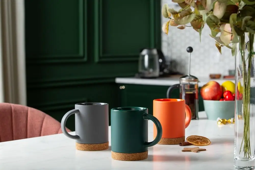 Яркий контраст текстурной пробки и матового фаянса делают кружку Corky не только стильным, но и практичным подарком.