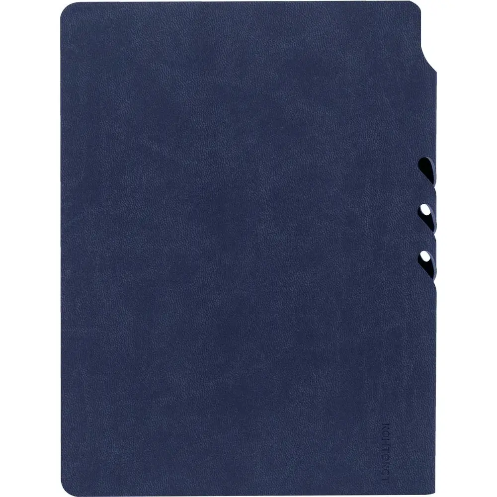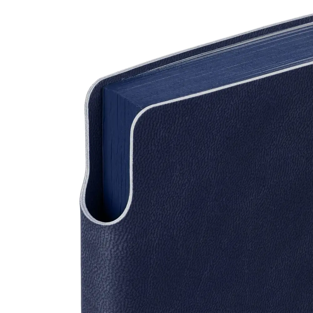 Гибкая обложка ежедневника выполнена из материала Latte, темно-синий XX. Внутри корешка — специальное место для крепления ручки размером до 15х0,9 см.
