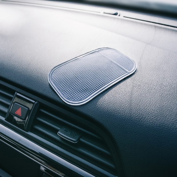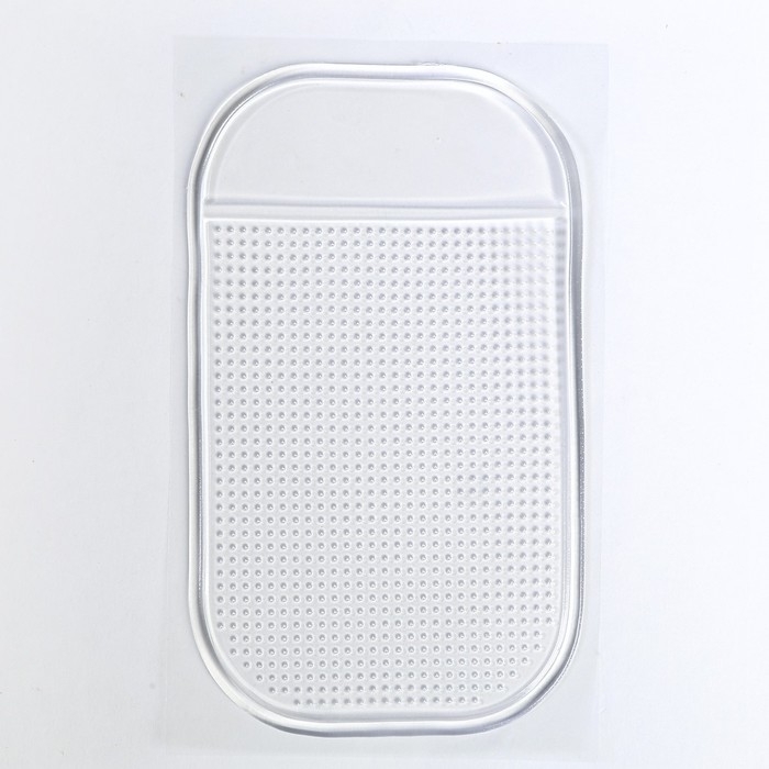 Противоскользящий коврик на приборную панель выполнен из легко моющегося и мягкого материала. Изделие плотно держится на любом покрытии приборной панели, а так же защищает её от повреждений. Аксессуар надёжно удерживает предметы при резких манёврах и поворотах.