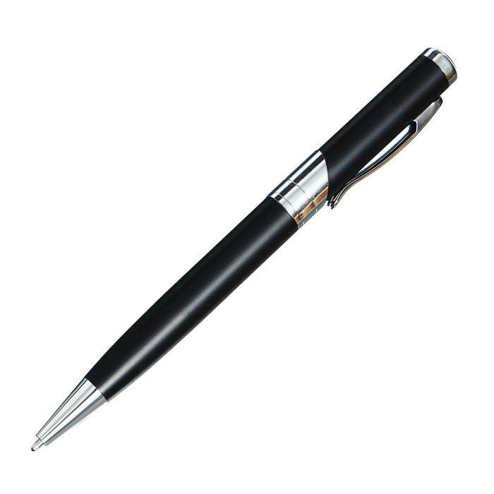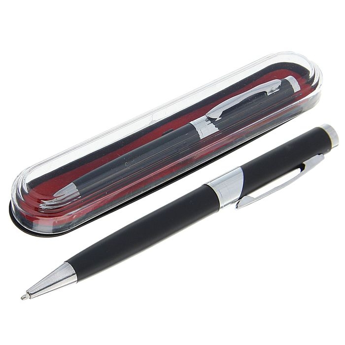 Ручка шариковая, подарочная, в пластиковом футляре, поворотная, "Бизнес", чёрная с серебристыми вставками