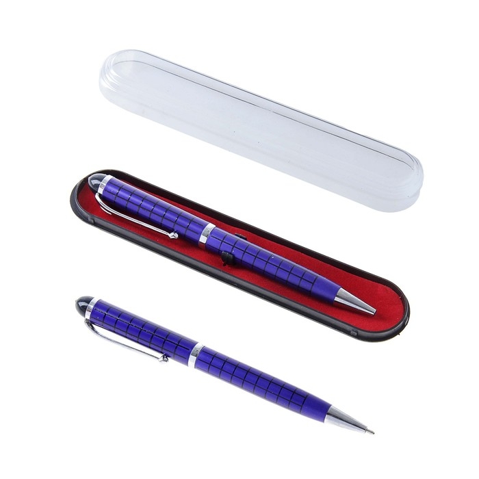 Ручка шариковая, подарочная, поворотная Calligrata "Шотландка", в пластиковом футляре, синяя с серебристыми вставками