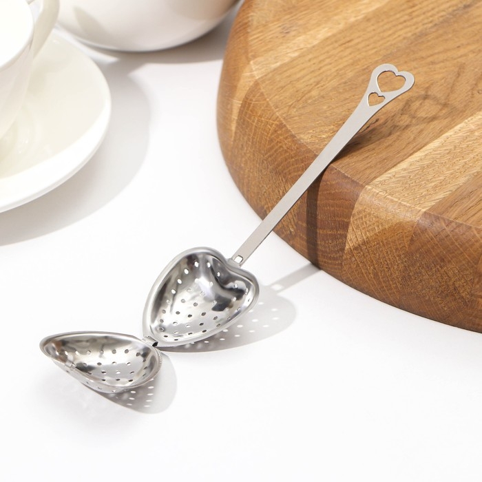 Ситечко для чая Доляна «Сердце», 14,5×4 см, цвет серебристый