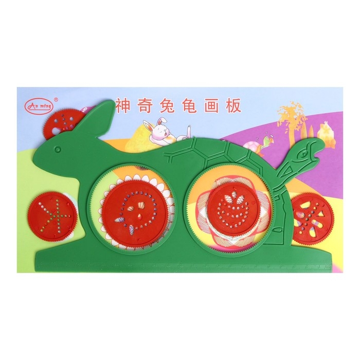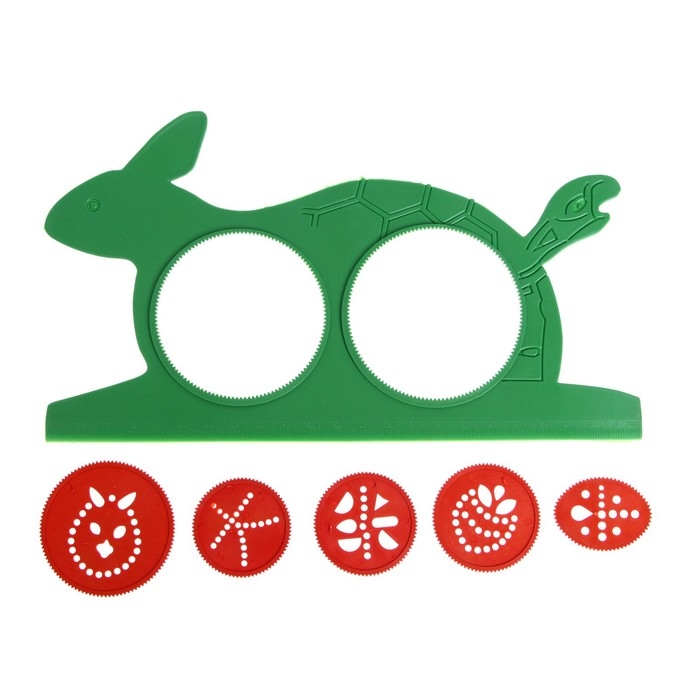 Спирограф — многофункциональная деревянная развивающая игрушка для рисования. Он имеет яркое оформление с тематическими изображениями, состоит из 2 зубчатых колёс с фигурными трафаретами и 5 кругов-шестерёнок.