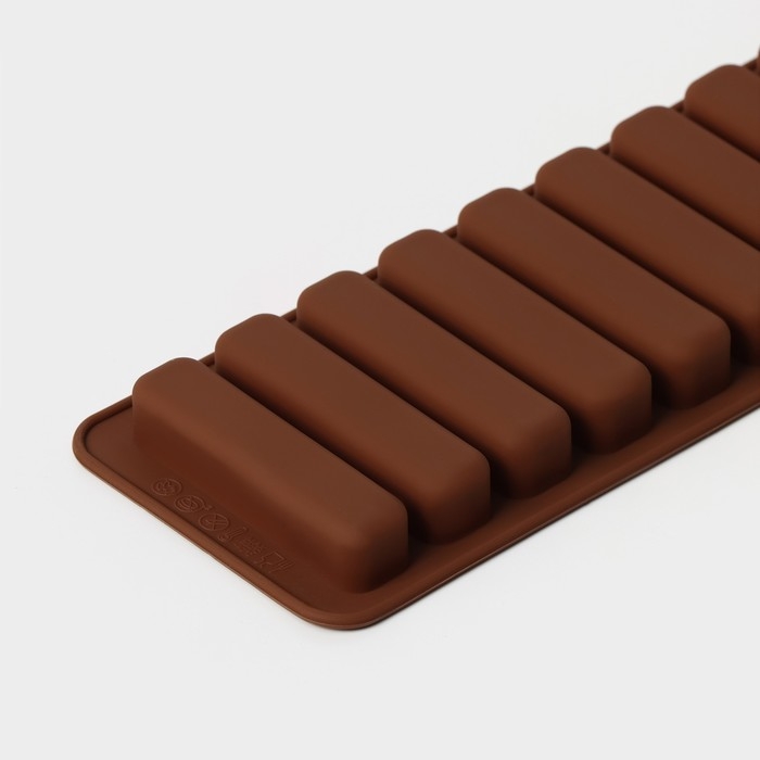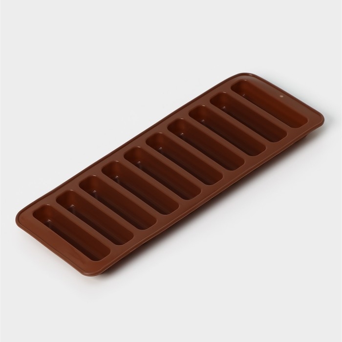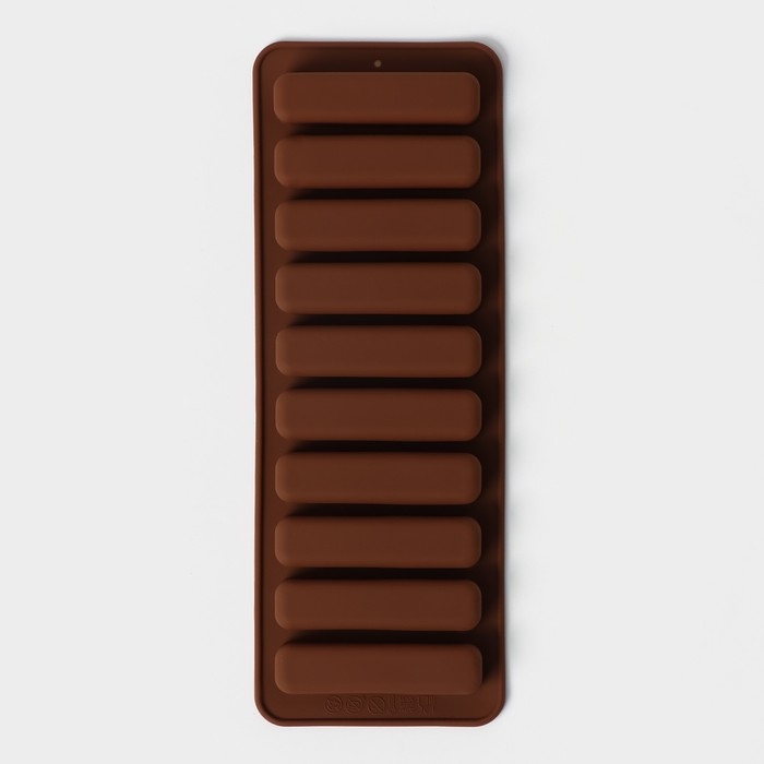 Форма для шоколада Доляна «Прямоугольник», силикон, 26×9,5 см, 10 ячеек (7,1×1,7 см), цвет коричневый