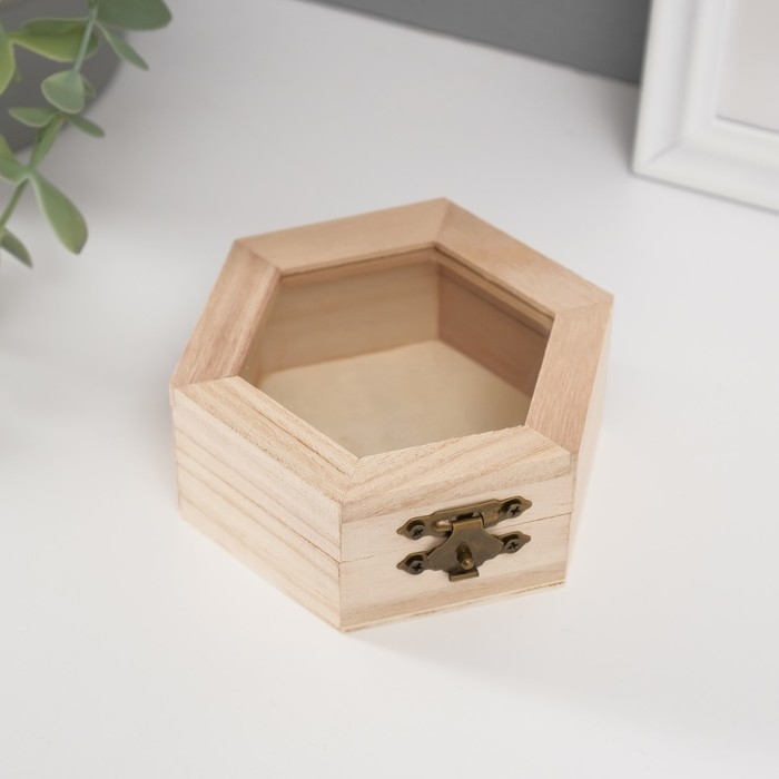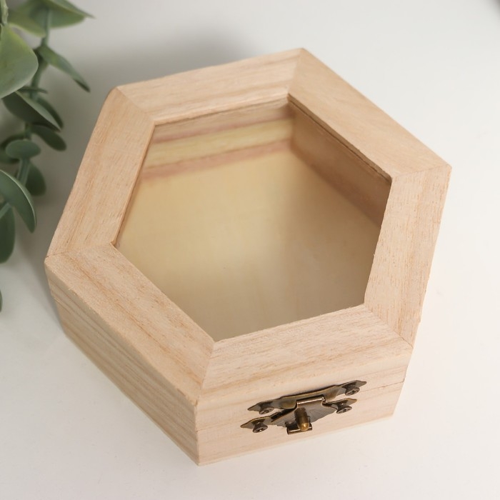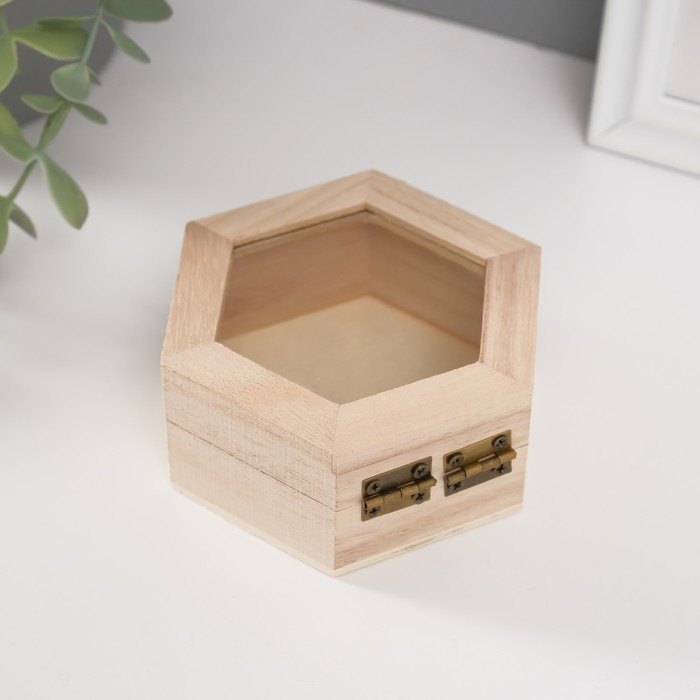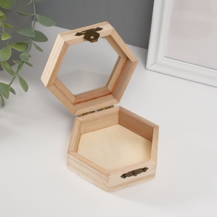 Шкатулка для росписи многогранник со стеклянной вставкой 10х9х4,5 см