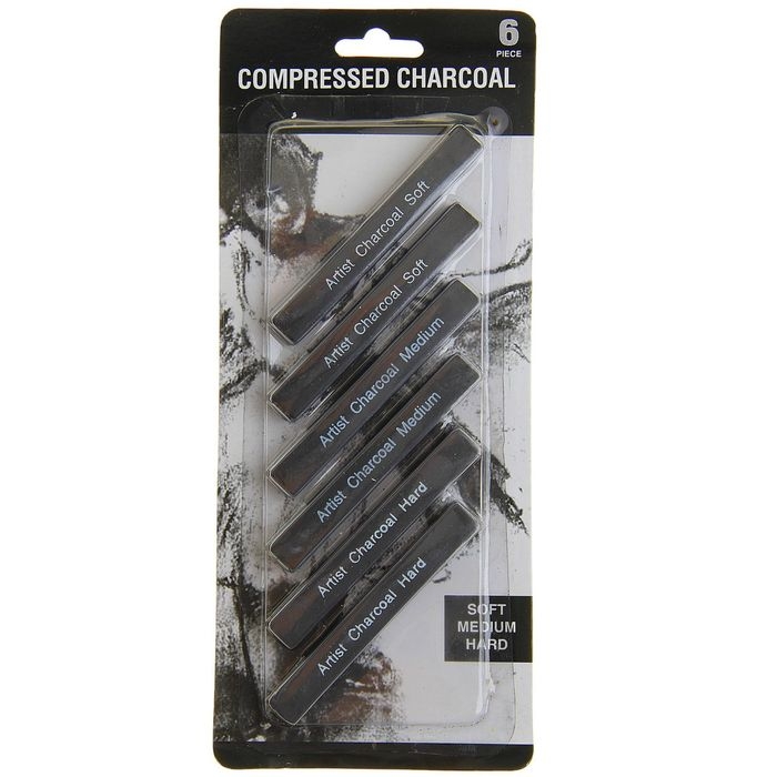 Уголь прессованный, чёрный, 6 штук в наборе (мягкий, средний, твёрдый)