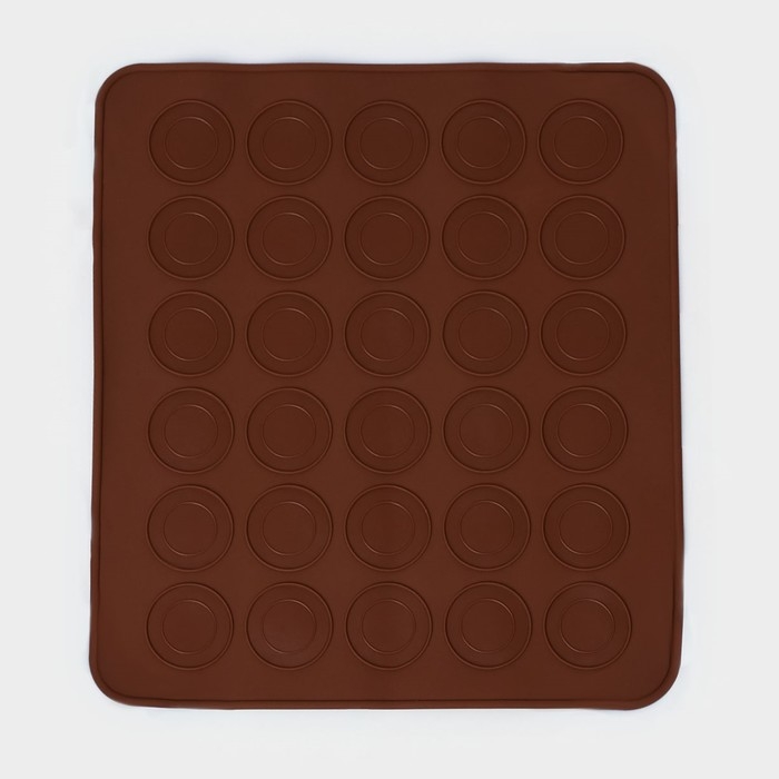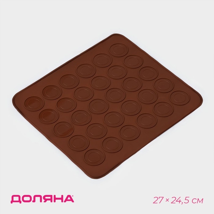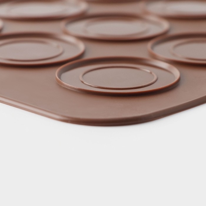 Коврик для выпечки макаронс Доляна «Ронд», силикон, 27×24,5 см, цвет коричневый