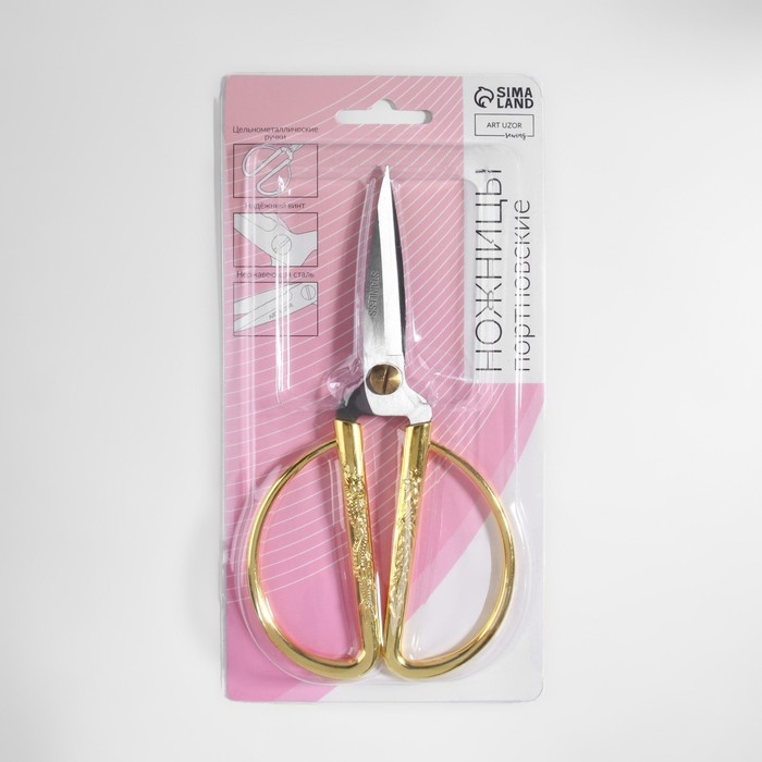 Ножницы для рукоделия, скошенное лезвие, 7", 17 см, цвет золотой