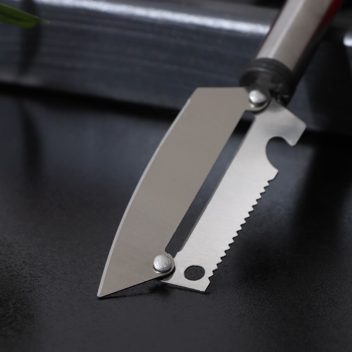 Шинковка, нож для нарезки, открывалка Доляна «Помощник», 3 в 1, 19,5 см (лезвие 9,8 см), цвет серебряный, чёрный