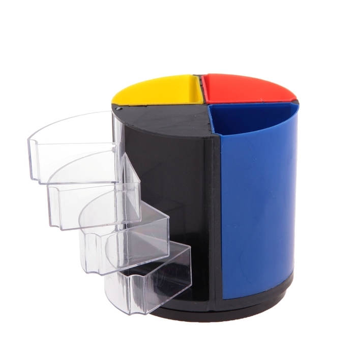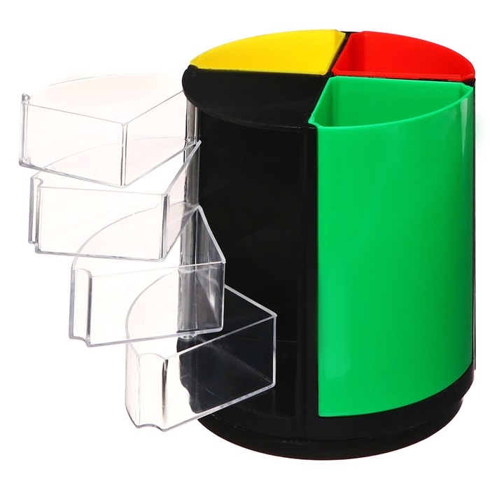Подставка-органайзер для канцелярии Дольки с выдвижными отделениями, вращающаяся, микс