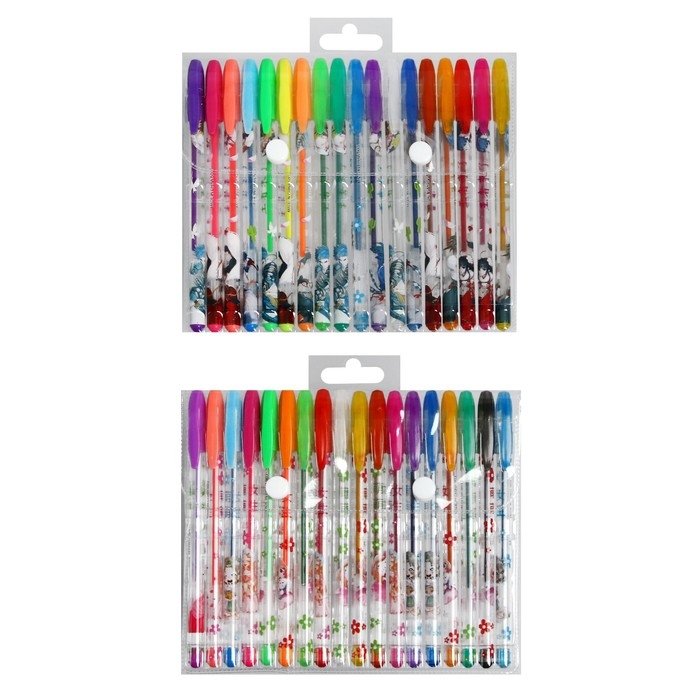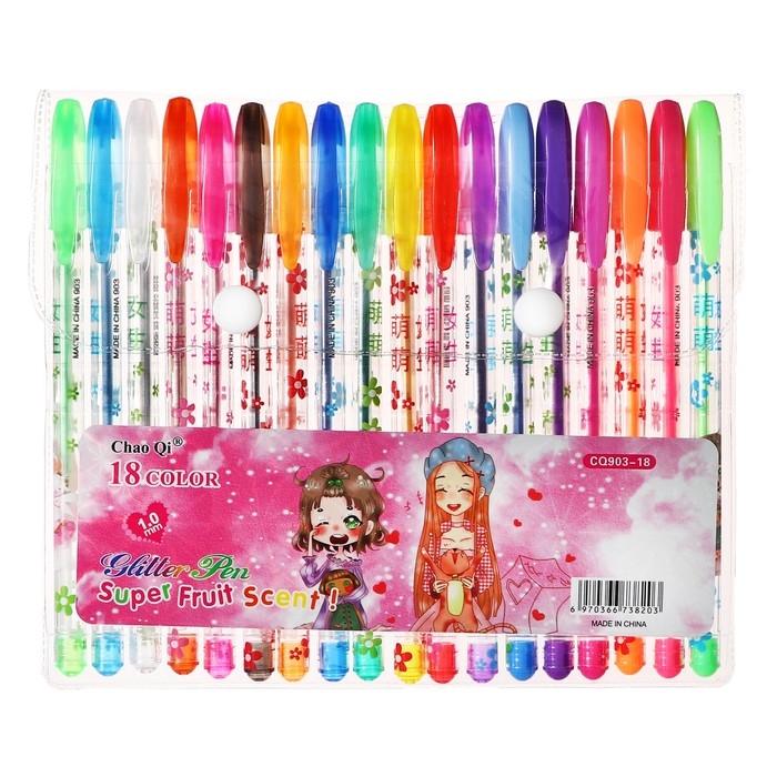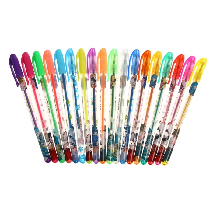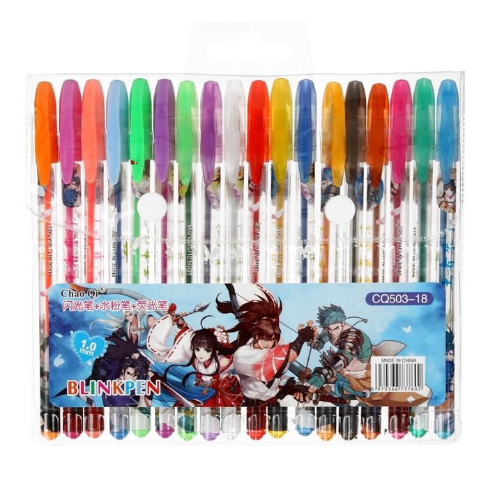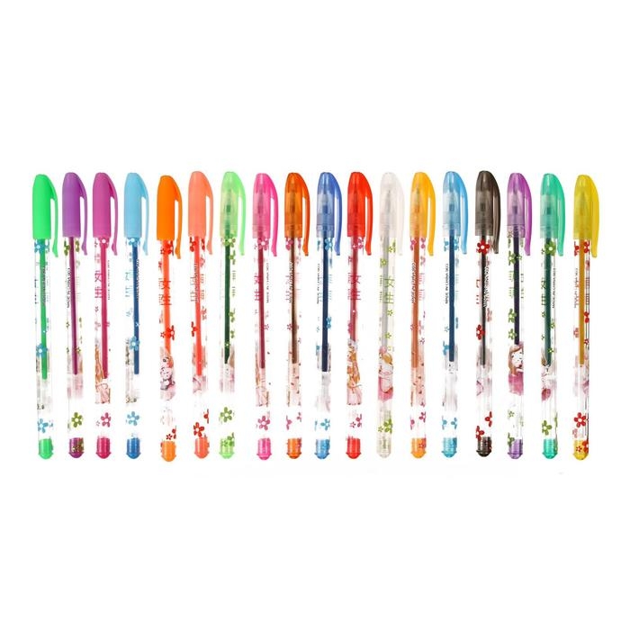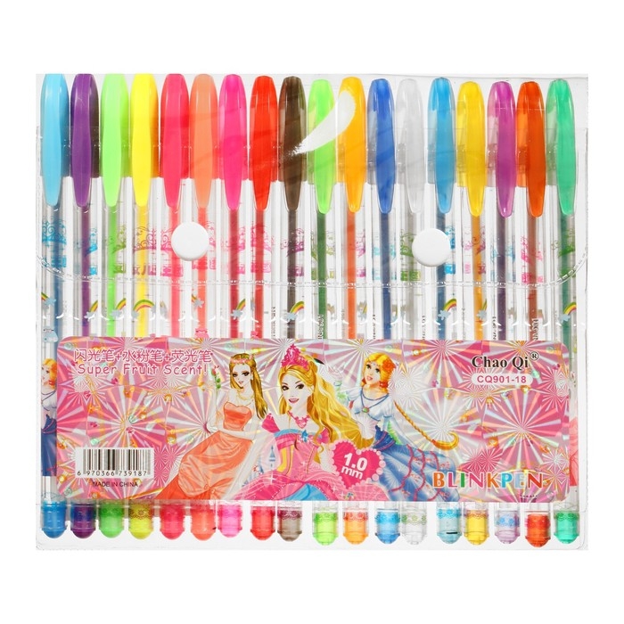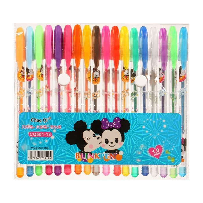 Набор гелевых ручек, 18 цветов, металлик, корпус с рисунком, в блистере на кнопке