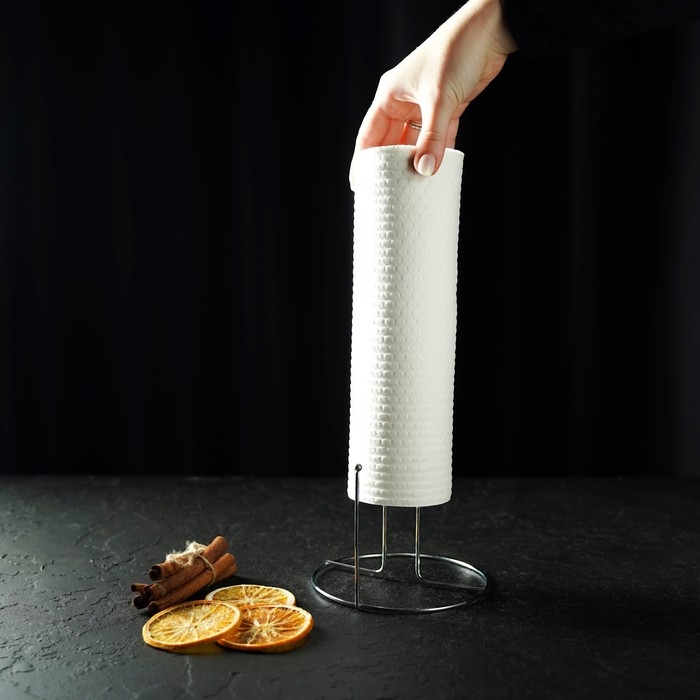 Подставка под бумажные полотенца выполнена из прочного металла. Элегантная в своей простоте конструкция станет практичным дополнением кухни или ванной комнаты любого стиля. Хромовое покрытие выглядит дорого и стильно, надёжный металл не деформируется от активного использования, будет служить вам верой и правдой долгие годы.