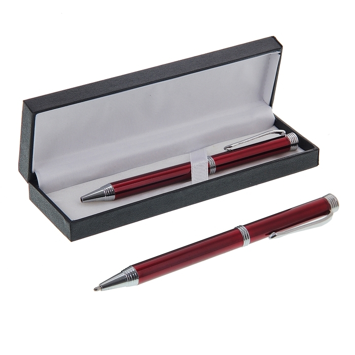 Шариковая подарочная ручка в футляре из кожзама – продемонстрирует ваш безупречный вкус и подчеркнёт статус своего обладателя. Обтекаемый металлический корпус декорирован блестящими деталями, а футляр имитирует натуральную кожу.