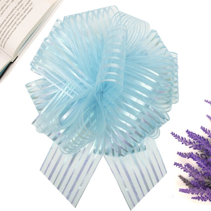 Бант-шар №10 "Полоски", цвет голубой