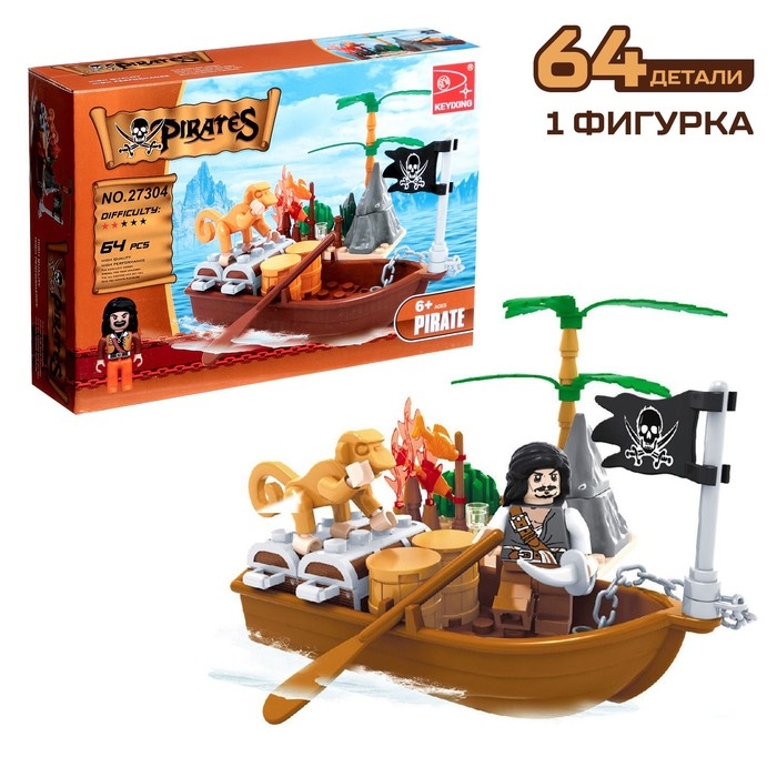 Конструктор «Пиратская лодка», 62-66 деталей, МИКС