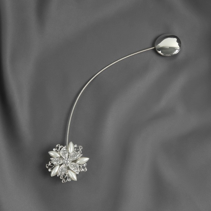 Подхват для штор «Георгин», d=6 см, цвет серебряный, белый