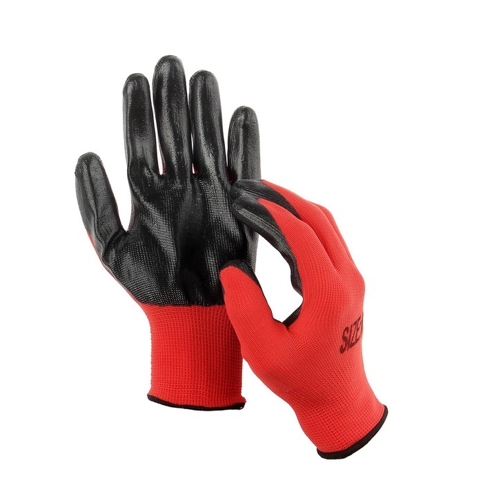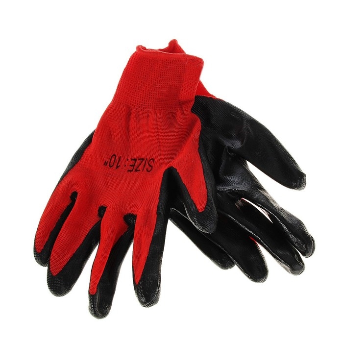 Перчатки садовые, нейлоновые, с резиновым обливом, размер 10, чёрно-красные, Greengo