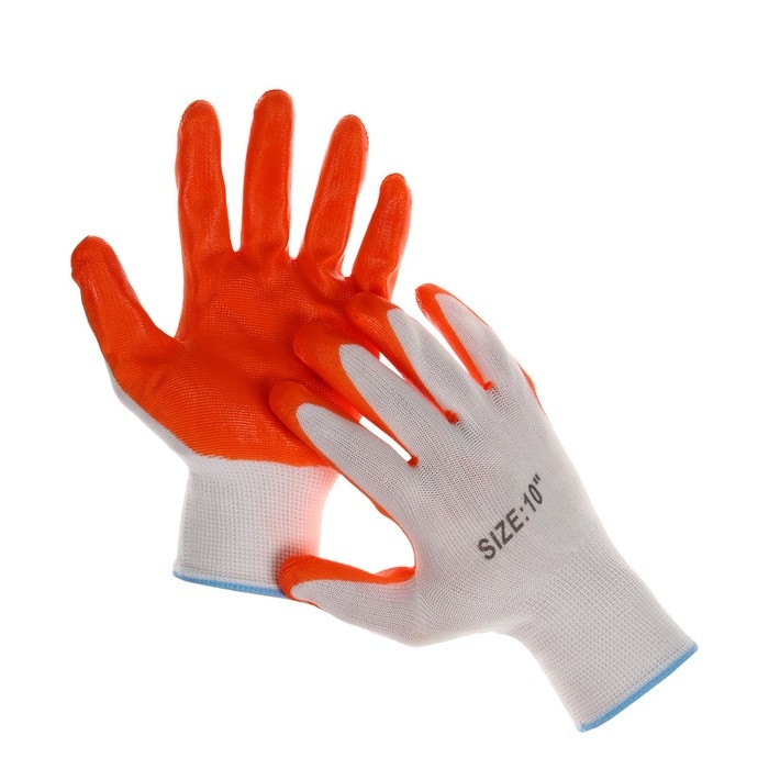 Перчатки садовые, нейлоновые, с нитриловым полуобливом, размер 10, оранжевые, Greengo