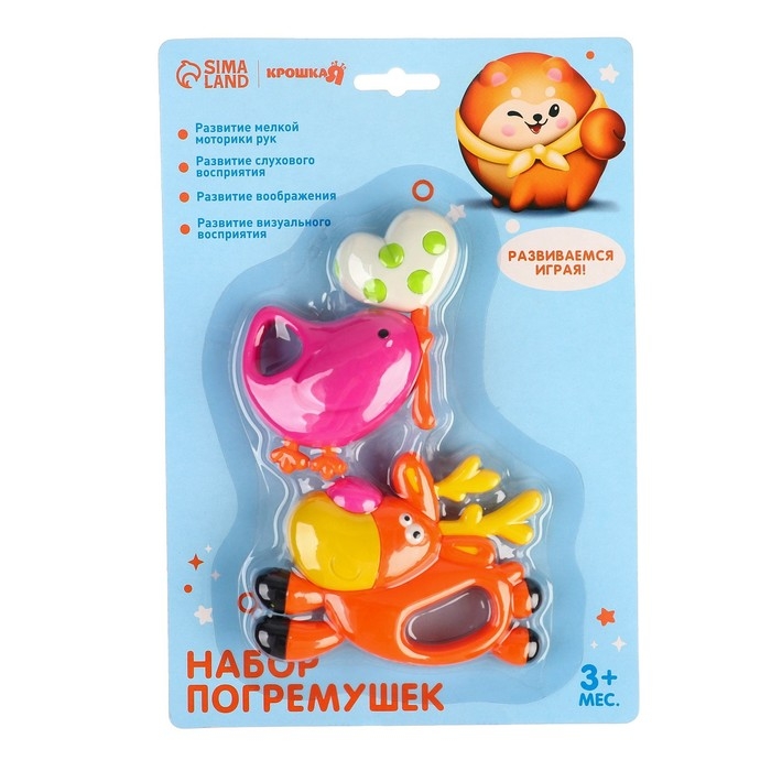 Набор погремушек «Олененок и Птичка», 2 шт, Крошка Я