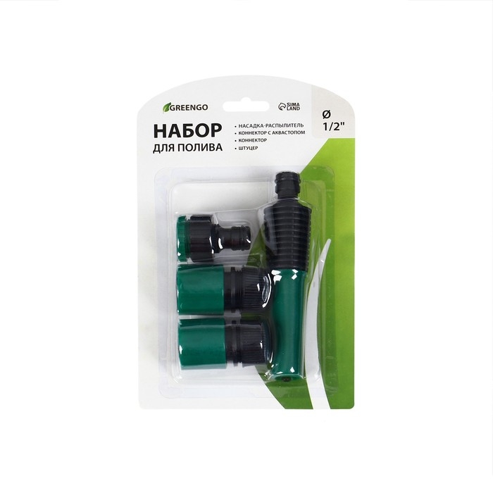 Набор: пистолет-распылитель, коннектор 1/2" (12 мм), коннектор с аквастопом 1/2" (12 мм), пластик, Greengo
