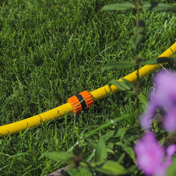 Если поливочный шланг вдруг порвался, потрескался и теперь сочится водой в самых неожиданных местах, не торопитесь покупать новый. Возьмите ремонтную муфту, аккуратно вырежьте поврежденный кусок и вставьте два конца шланга в крепления. Теперь можете вновь приступать к поливочным работам.