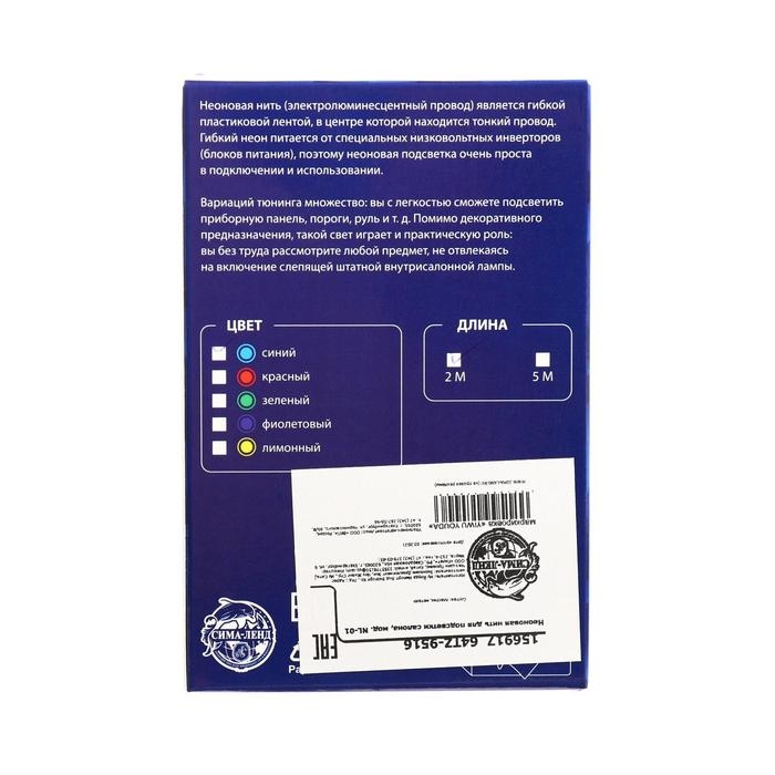 Неоновая нить Cartage для подсветки салона, адаптер питания 12 В, 2 м, синий