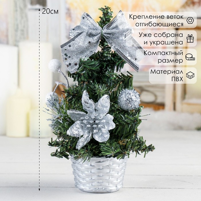 Ёлка декор "Снежные шарики" 20 см, серебро
