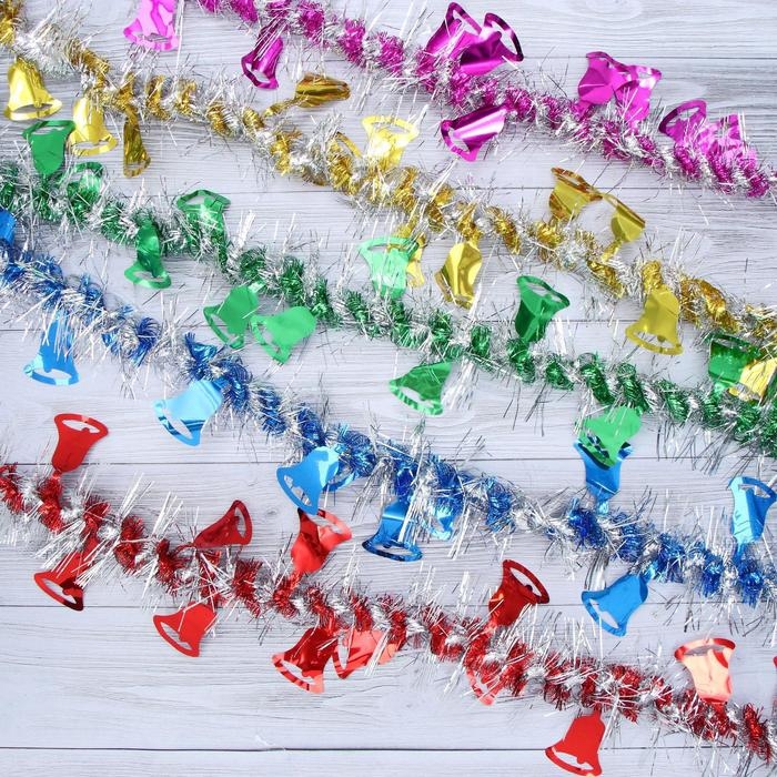 Мишура "Фонарик колокольчик" d-2 см, 200 см, микс поможет создать яркий декор, например, выложите ей число грядущего года. Ещё искрящееся украшение послужит нарядным аксессуаром: браслетом, бусами или головным убором.