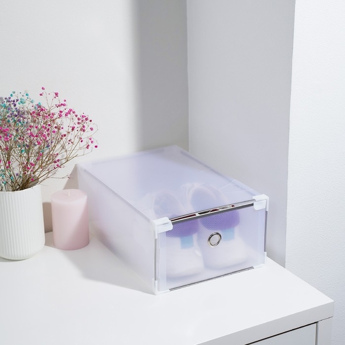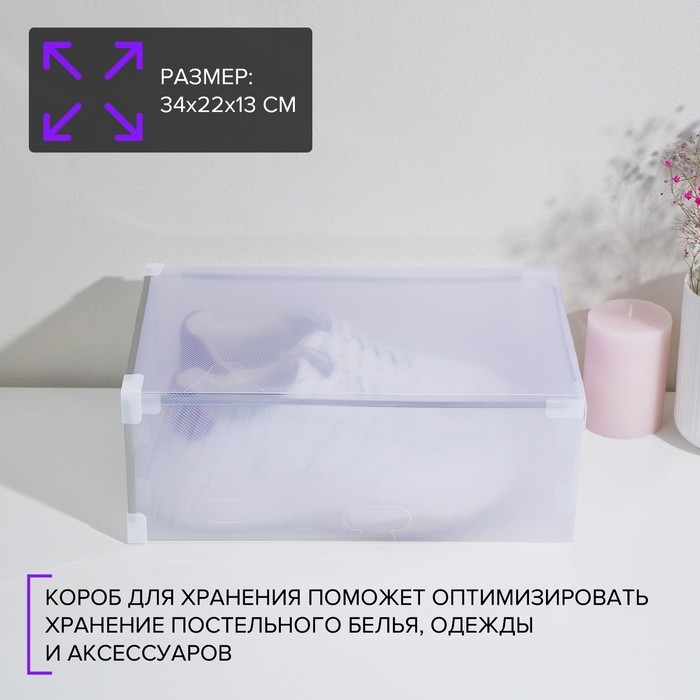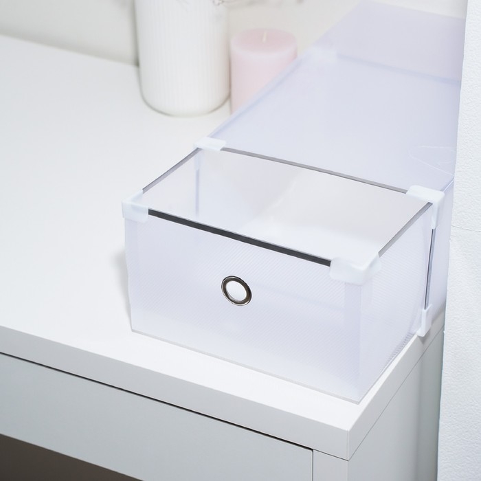 Коробка для хранения обуви выдвижная Доляна Large size, 22×34×13 см, цвет белый